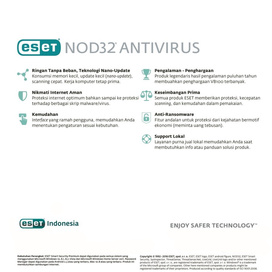 ESET NOD32 Antivirus runs on any system with Microsoft® Windows® 10, 8.1, 8, 7, Vista, and Microsoft Windows Home Server 2011. Product requires an internet connection. ESET NOD32 Antivirus. With the advent of technology, personal computing and web browsing are getting risky.