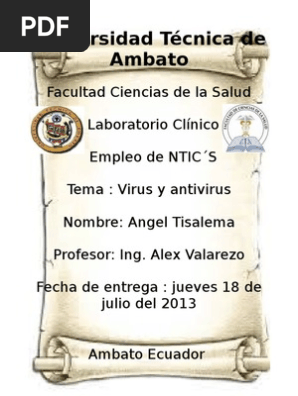 Clasificación - Virus y Antivirus - Weebly Clasificación - Virus y Antivirus clasificación Virus que afectan los sectores de arranque de los discos o infectores del área de carga inicial - infectan los disquetes o el disco duro y se alojan en el área donde están los archivos que se cargan a memoria principal antes de cualquier programado disk boot sector. PDF VIRUS Y ANTIVIRUS - Icesi §Retro Virus: son los que atacan directamente al antivirus que está en la computadora. Su función es buscar las tablas de las definiciones de virus del antivirus y las destruye.-§Virus Lentos : infectan solamente los archivos que el usuario hace ejecutar por el sistema operativo, por ejemplo sólo podrá infectar el Virus y Antivirus:… Clasificacion :) | EL RINKON DE KEPU Que es un antivirus y su clasificación Es un programa creado para prevenir o evitar la activación de los virus, así como su propagación y contagio. Cuenta además con rutinas de detención, eliminación y reconstrucción de los archivos y las áreas infectadas del sistema. Un antivirus tiene tres principales funciones y componentes: Virus y antivirus, definición y clasificación, escanear y ... Hay muchas formas con las que un computador puede exponerse o infectarse con virus. Veamos algunas de ellas: Mensajes dejados en redes sociales como Twitter o Facebook. Archivos adjuntos en los mensajes de correo electrónico. Sitios web sospechosos. Insertar USBs, DVDs o CDs con