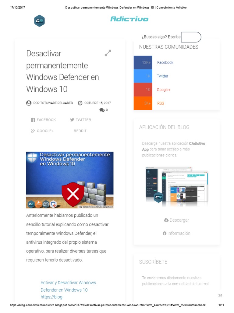 Cómo desactivar Windows Defender de forma definitiva en tu tablet... Windows Defender es un antivirus gratuito desarrollado por Microsoft que viene instalado de forma nativa en todo PC o tablet Windows 10 y que deja de trabajar Contenido. 1 Cómo deshabilitar Windows Defender temporalmente. 2 Así nos desharemos de Windows Defender definitivamente.