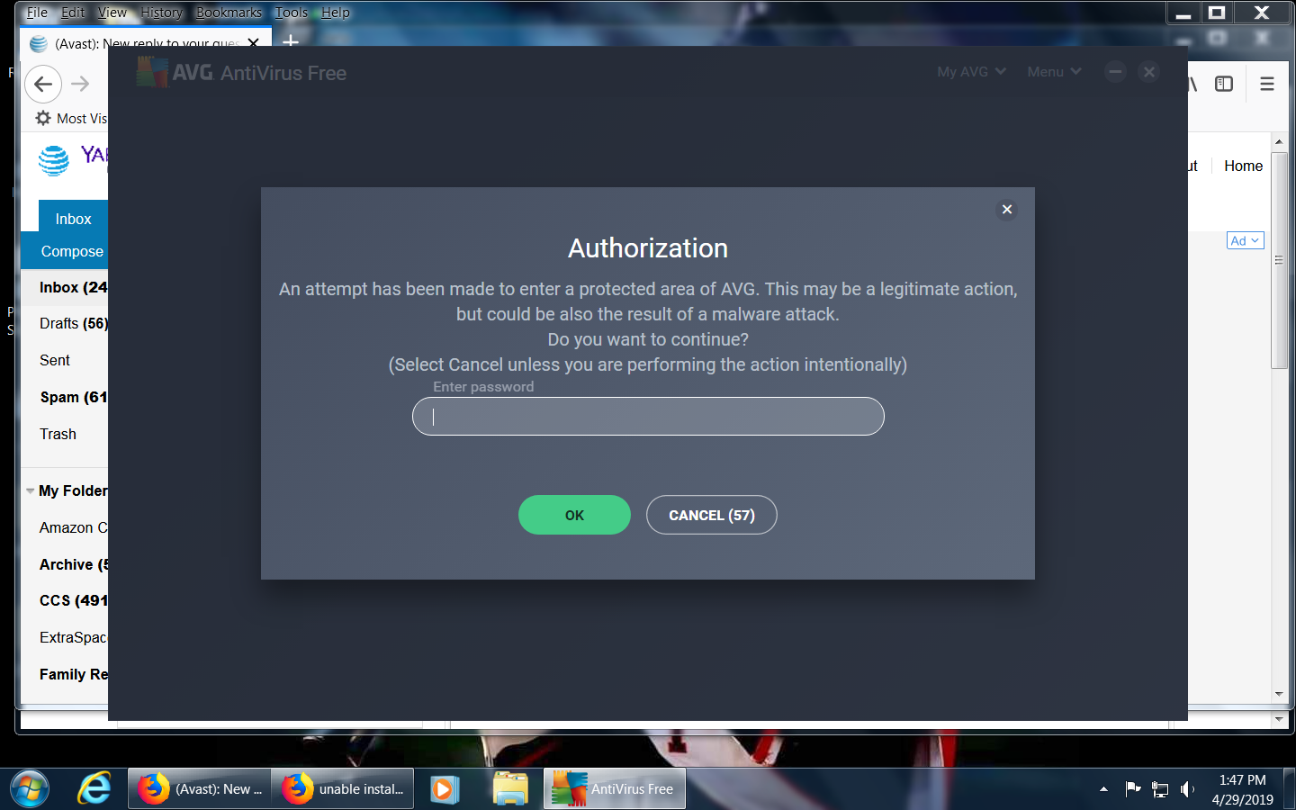 Unable to uninstall antivirus