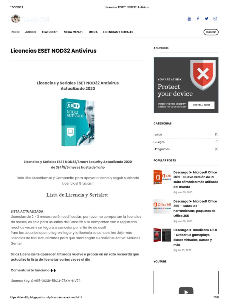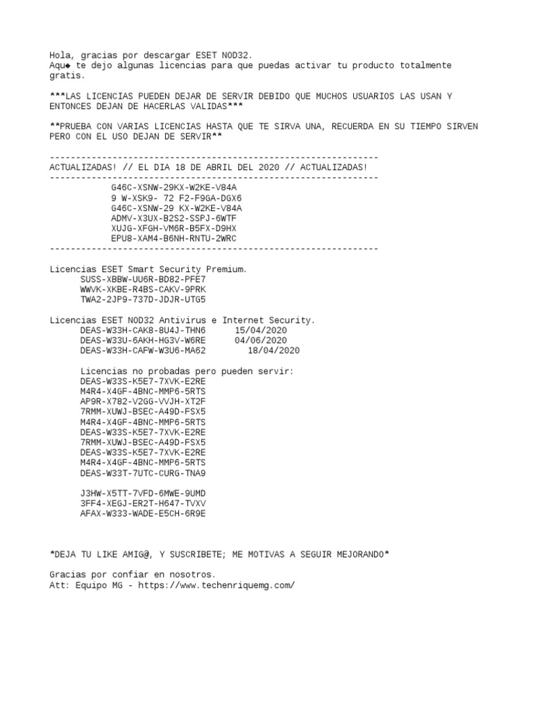Licencia eset nod32 antivirus hasta 2020. nod32.uptodown.comNOD32 Antivirus para Windows - Descarga gratis en Uptodown Aug 03, 2021 · ESET NOD32 Antivirus es uno de los antivirus para Windows más prestigiosos y de mayor reputación debido a la velocidad con la que efectúa los análisis para detectar amenazas y a su potente motor heurístico, que es capaz de hallar malware desconocido hasta el momento en función de su actividad.