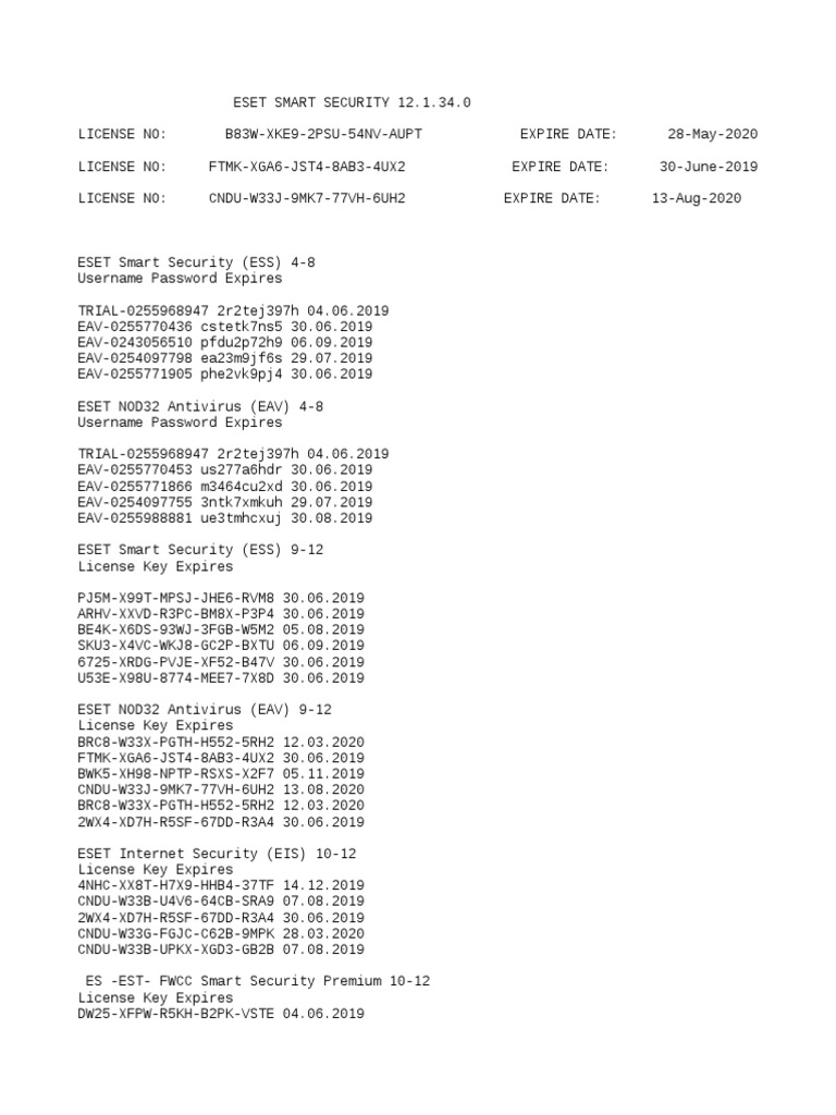 Eset Nod32 License Key Latest Key Update 15-05-2019 | PDF ...