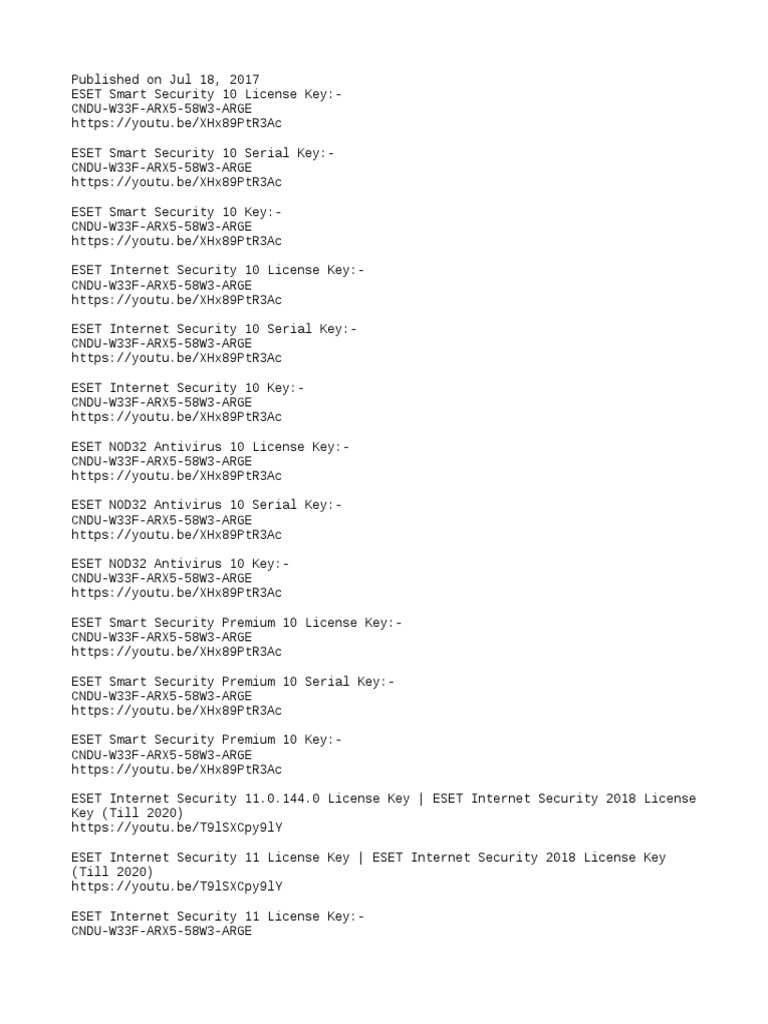 Eset Nod32 Internet Security 15, 14 Serial Keys 2022-2023-2024 - Facebook Eset Nod32 Internet Security 15, 14 Serial Keys 2022-2023-2024. 3,444 likes · 8 talking about this. Eset Nod32 Internet Security 14-15 license key free 2022-2023-2024 and Eset Nod32 Antivirus 15-14-13