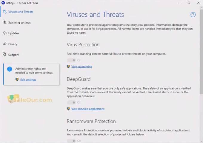 How to install F-Secure SAFE on your PC - F-Secure Community To install F-Secure Internet Security for SAFE on your computer, we recommend to first uninstall any other Anti-Virus products. ... Removing Virgin Media Security. 1. Download Virgin Media Uninstaller Tool: ... All about F-Secure Internet Security. All about F-Secure Anti-Virus for Mac. All about F-Secure Mobile Security. 4 4 Like F-Secure SAFE Mobile Antivirus 19.2.0022238 | DOWNLOAD Download Description Changelog Specifications F-Secure SAFE Mobile Antivirus protects you Android smartphone or tablet with award-winning internet security and mobile antivirus. F-Secure always applies strict security measures to protect the confidentiality and integrity of your personal data. Try it now for free! F-Secure Antivirus Review 2023 — Is It Actually Any Good? F-Secure SAFE is the basic plan that includes the following features: Antivirus. Ransomware protection. Browsing protection. Banking protection. Parental controls. Gaming mode. Customer support. At $59.90 / year, F-Secure SAFE is slightly less expensive than its competitors' entry-level packages (like Norton, McAfee, and TotalAV). Download the latest product versions | F-Secure Download for Windows F-Secure ID PROTECTION F-Secure ID PROTECTION helps prevent hackers from using your personal information to take over your accounts and commit identity theft online. Read more. Log in to My F‑Secure to renew your F‑Secure ID PROTECTION subscription. For help and advice, please visit our support pages. Log in to My F-Secure