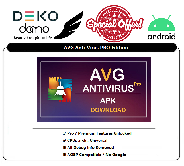 Download AVG AntiVirus MOD APK 6.56.1 (Pro Unlocked) Download AVG AntiVirus MOD APK 6.56.1 (Pro Unlocked) latest version We're using our smartphones more and more on our daily activates, which is why there is an urgent need for good security on Android devices. You wouldn't want your system to be attacked by malwares or viruses since they might