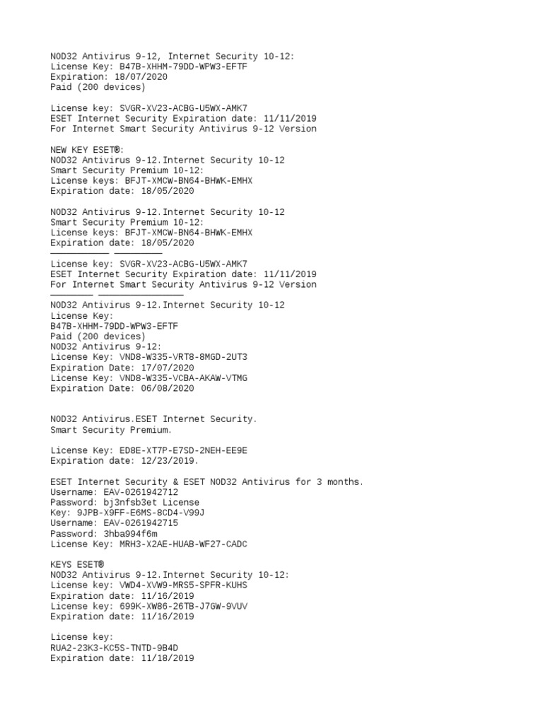 Eset Nod32 Antivirus Keys Valid 2020 | PDF | Computer ...