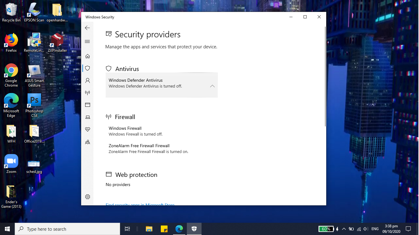 Turn Windows Security on or off - Microsoft Support Turn Windows Security on or off Security Windows 10 When you get a new device and start up Windows 10 for the first time, the antivirus protection that comes installed with the device is your default security app. However, Windows Security is pre-installed and ready for you to use at any time.